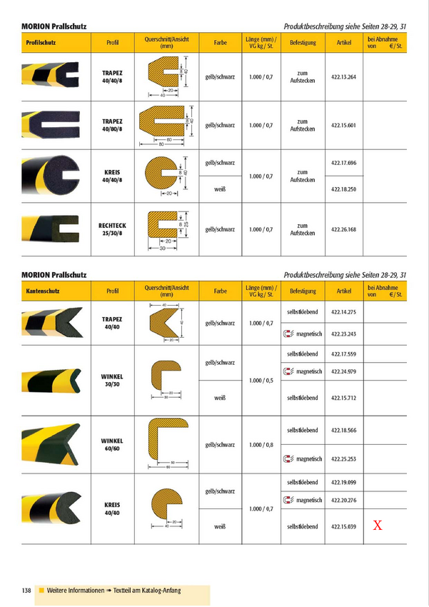 Moravia 422.15.039 MORION ochrona przed obwodzie - osłona krawędzi biała (Ø x D) 40 mm x 1000 mm