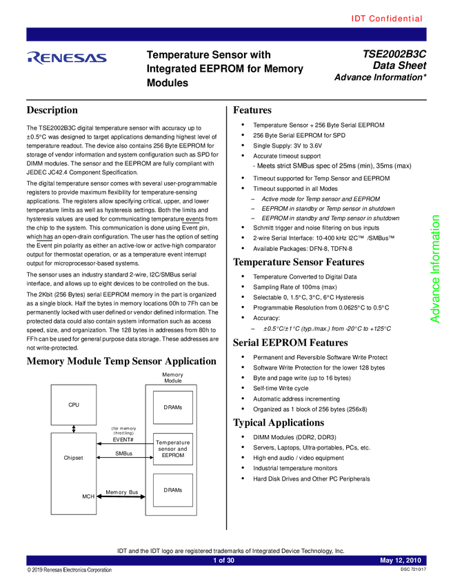 TSE2002B3CNCG Local Temperature Sensor with Integrated EEPROM