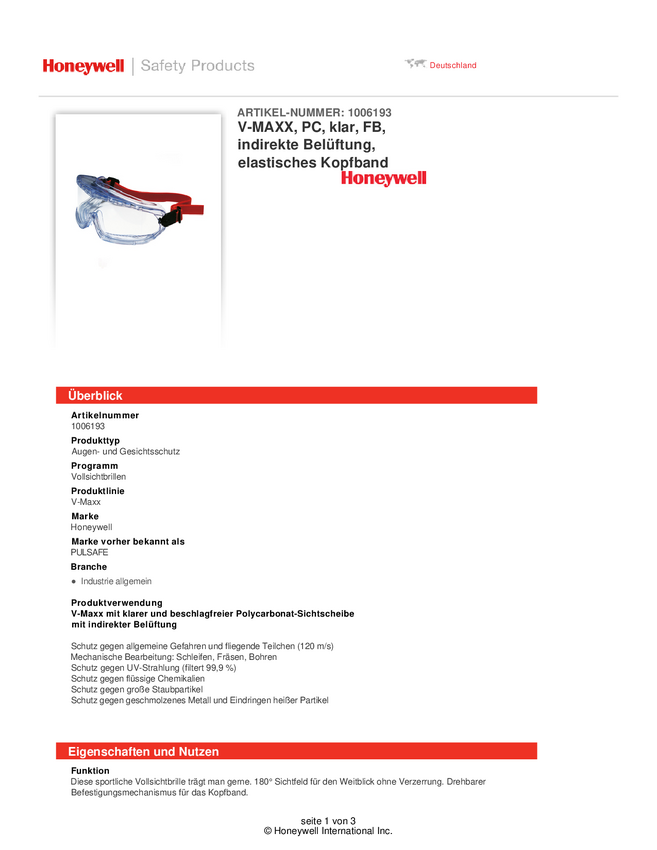 1006193 Okulary ochronne Honeywell V-MAXX, Plastik, EN 166