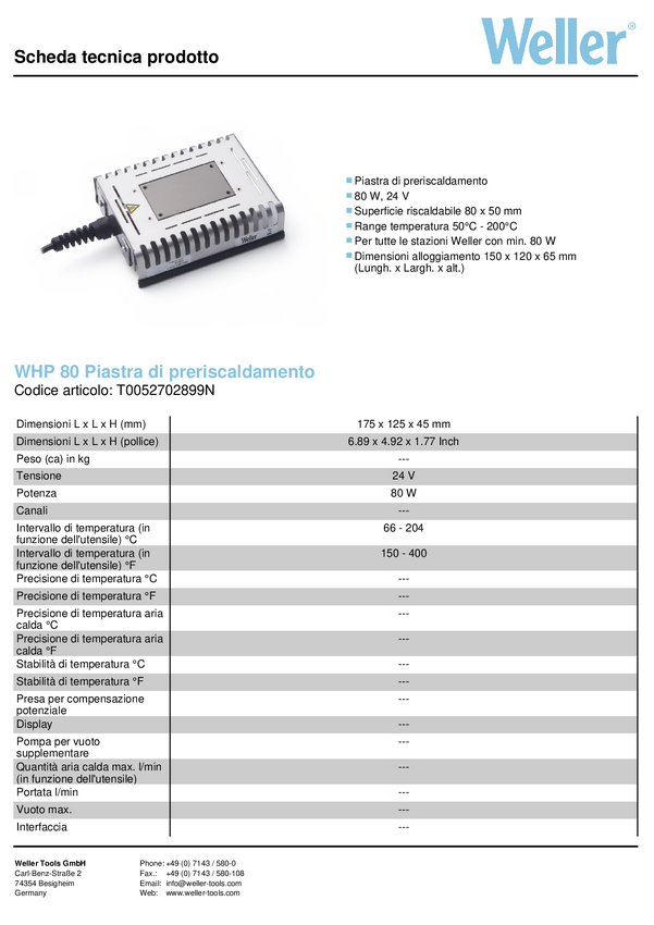 Płyta grzewcza Weller WHP 80 52702899, 1 szt.