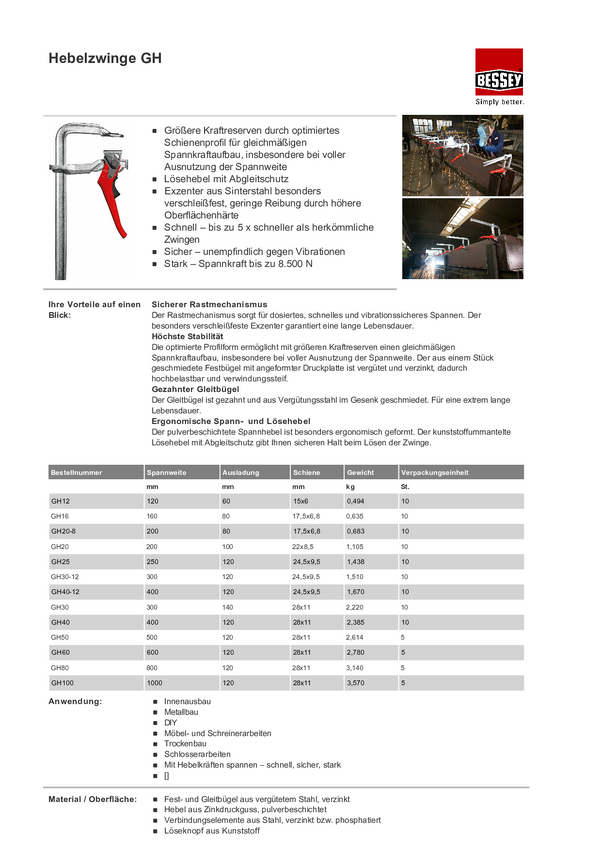 Ścisk dźwigniowy ślusarski stalowy GH 160/80 Bessey GH16