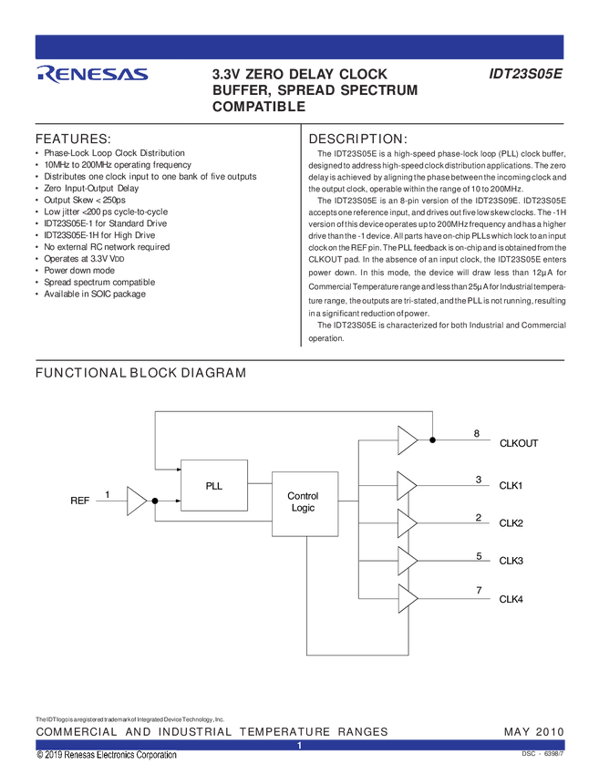 23S05E-1DCG 3.3V Zero Delay Clock Buffer, Spread Spectrum Compatible