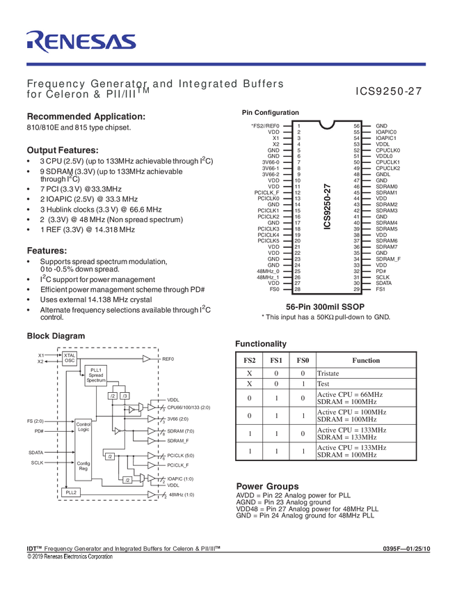 9250BF-27LF Frequency Generator & Integrated Buffers for Celeron & PII/III™