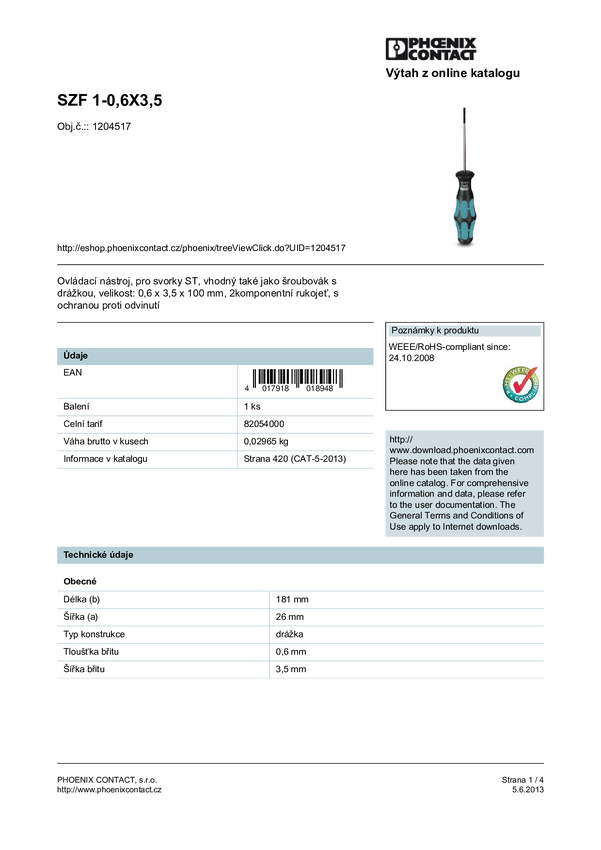1204517 Wkrętak płaski Phoenix Contact SZF 1-0,6X3,5 do warsztatu Szerokość klingi:...