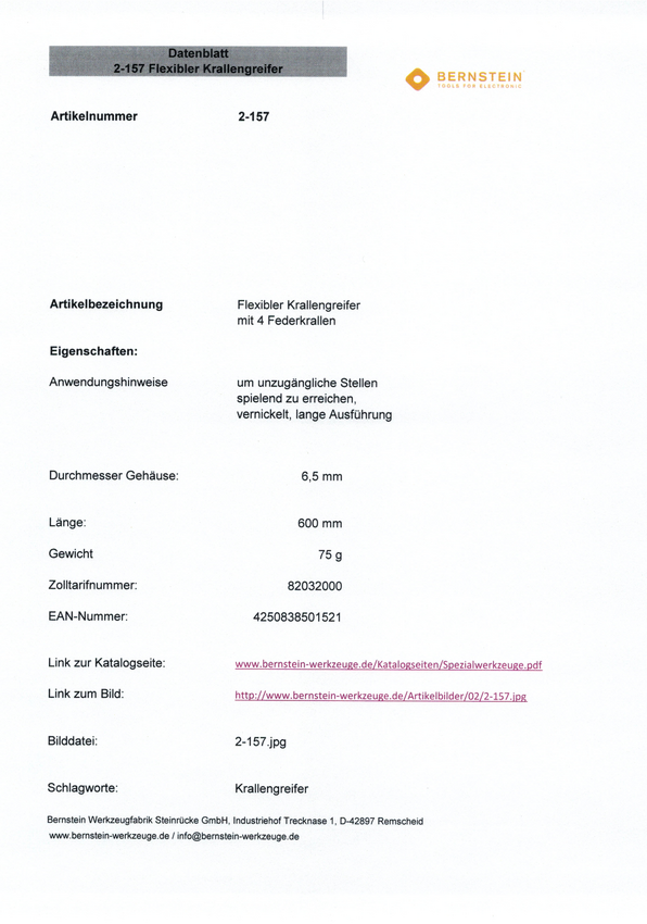 2-157 Elastyczny uchwyt haczykowaty Bernstein Tools for Electronics 2-157