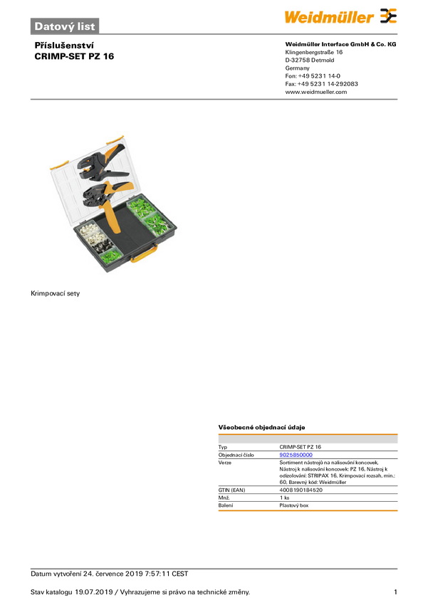 9025850000 Weidmüller CRIMP-SET PZ 16 9025850000 Zestaw - zaciskarka końcówki kablowe...