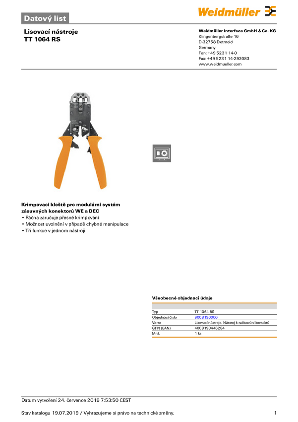 Zaciskarka Weidmüller TT 1064 RS 9008190000