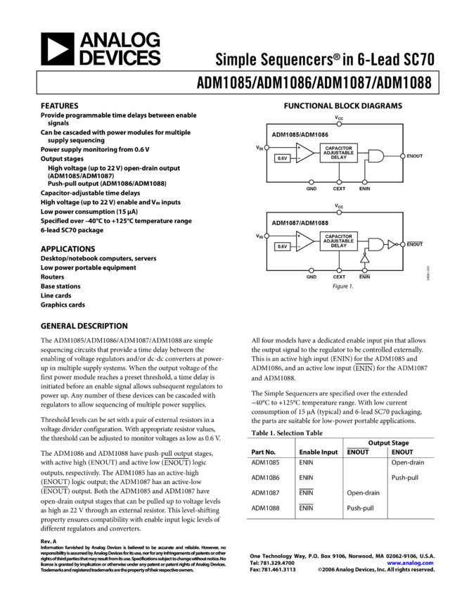 ADM1085 ADM1087: Voltage Sequencer with Active Low, Open-Drain Enable Output