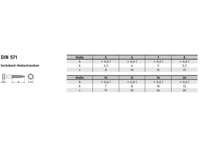 TOOLCRAFT 109155 Śruba z łbem sześciokątnym 6 mm 55 mm Nasadowa DIN 571 stal cynkowany galwanicznie 200 szt.