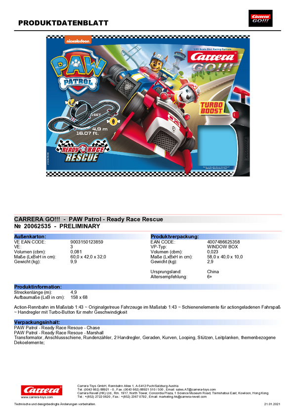 20062535 Zestaw torów wyścigowych Carrera GO!!! Psi Patrol - Ratunek w Gotowym Wyści...