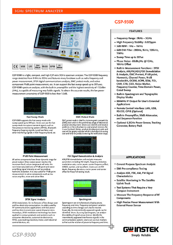 01SP930B10GT Analizator widma GW Instek GSP-9300 TG