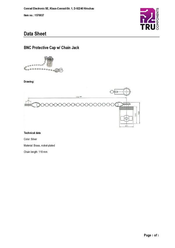 740616 Zatyczka TRU COMPONENTS 740616 srebrny 1 szt.
