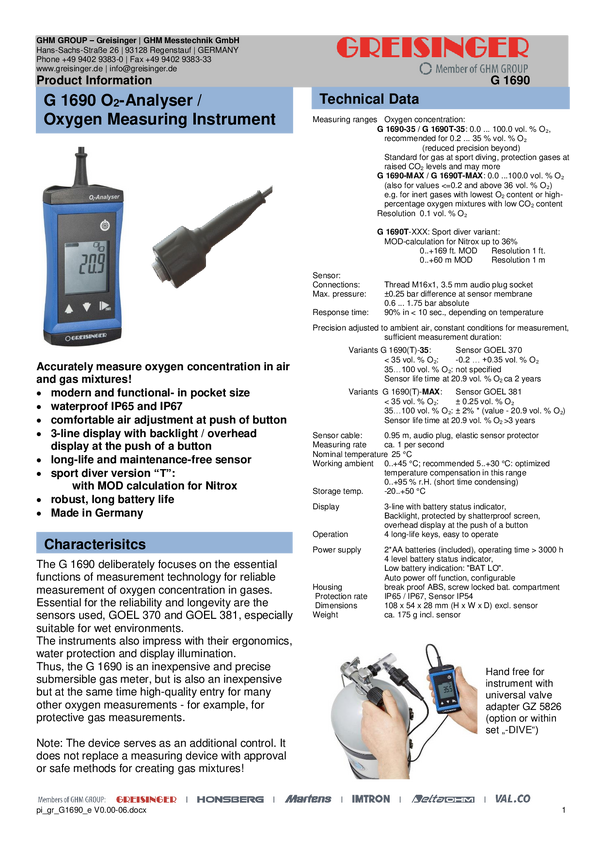 Miernik tlenu Greisinger G1690 482714, 0 - 100 %, IP65/67