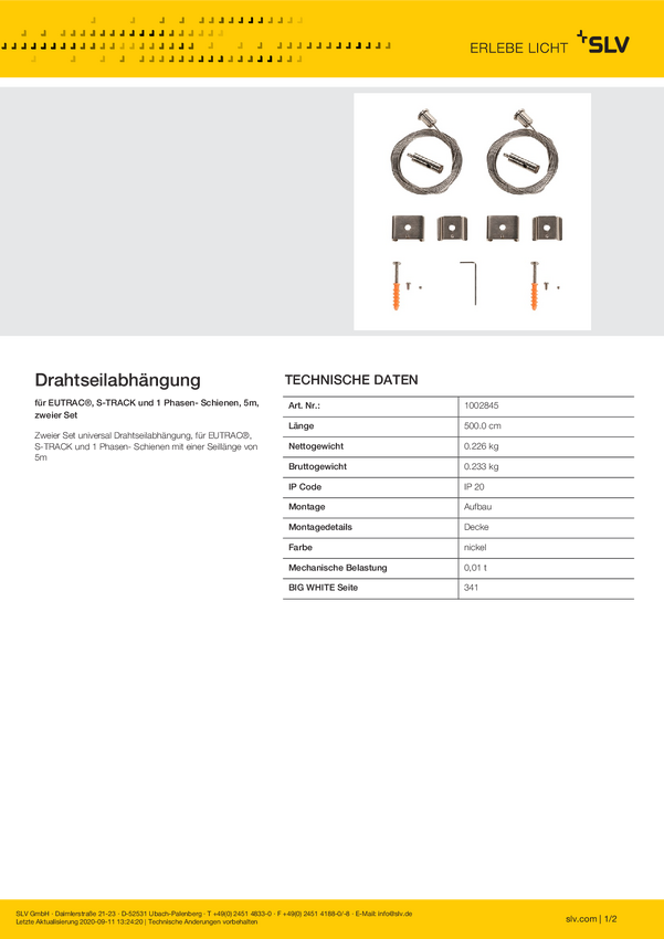 1002845 Drut do zawieszenia SLV EUTRAC®/1PHASEN-AUFBAUSCHIENE 1002845 niklu met...