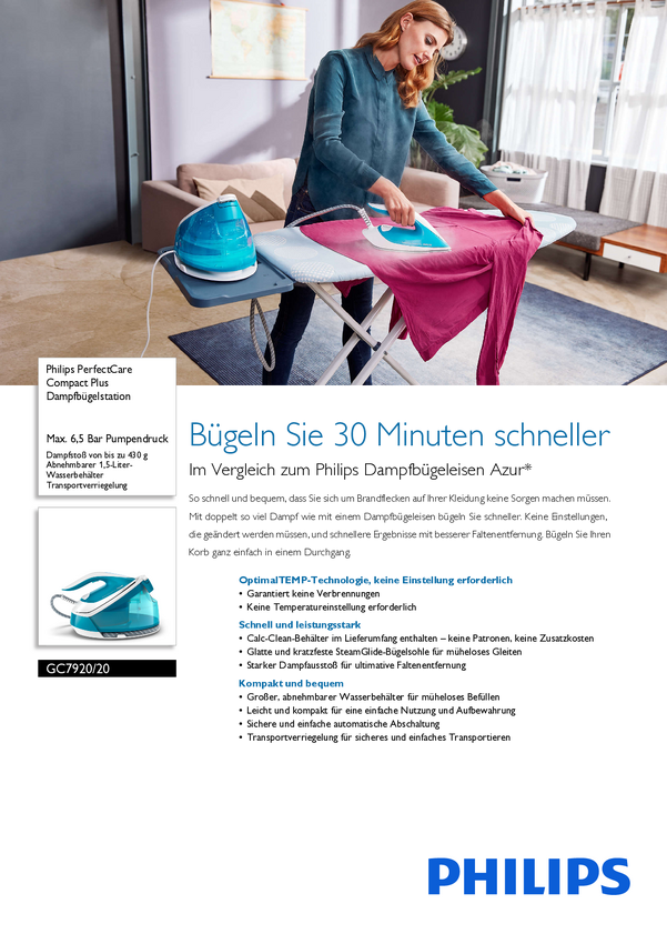 GC7920/20 Stacja parowa Philips Home PerfectCare Compact Plus, 2400 W, 2.8 kg