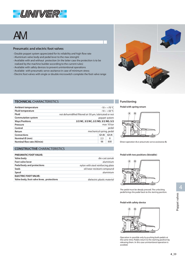 AM-5001A Zawór mechaniczny stopowy Univer AM-5001, 5/2-drożny, G1/4, 800 l&#...
