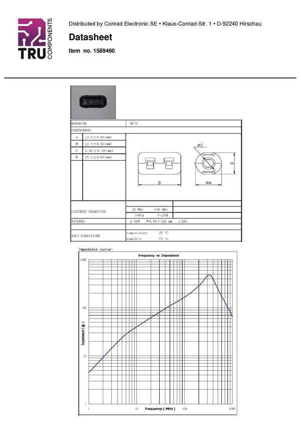 TC-KFR50 TRU COMPONENTS TC-KFR50 TC-KFR50 Ferryt 120 Ω Maksymalna średnica kabla 5 m...
