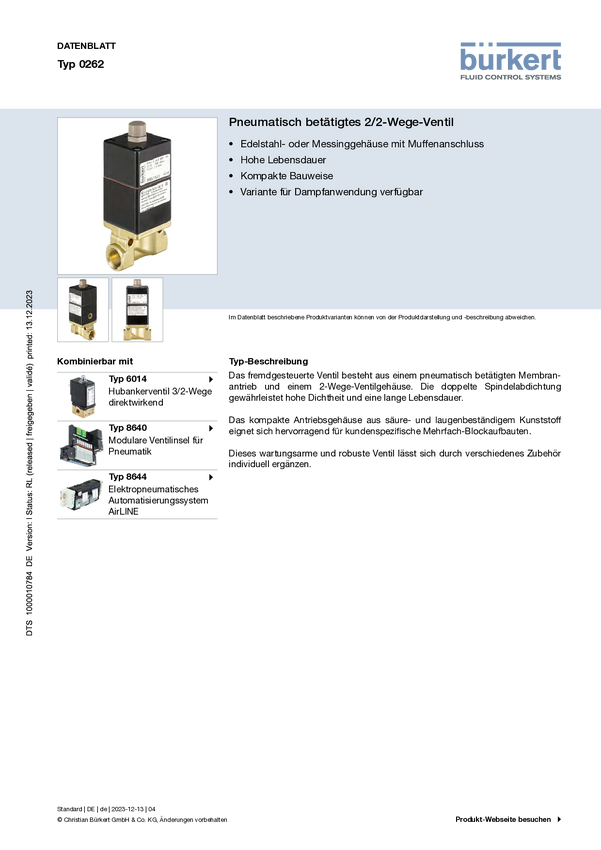 27643 Zawór pneumatyczny Bürkert 0262 27643