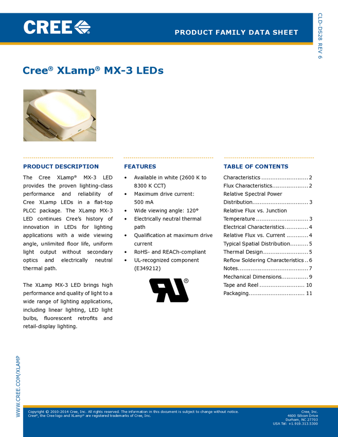 MX3AWT-A1-R250-000C51 Dioda LED HighPower CREE MX3AWT-A1-R250-000C51 biały 2 W 104 lm