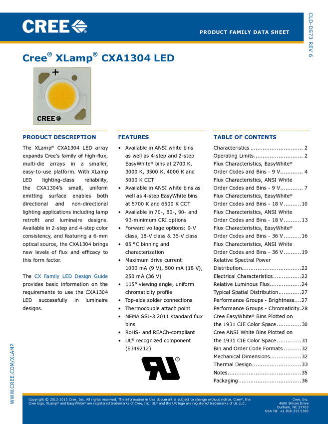 CXA1304-0000-000C00A40E7 Dioda LED HighPower CREE CXA1304-0000-000C00A40E7 ciepły biały 10.9 W 368 l...