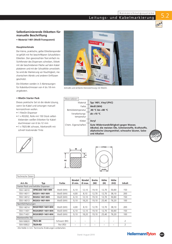 Etykieta kablowa HellermannTyton RO202REF-1401-WH 550-11401, 12.70 x 19.10 mm, etykiety na arkuszu: 150, 150 szt.