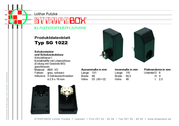 SG 1022-BK Obudowa ładowarki wtyczkowej Strapubox , SG 1022, czarna