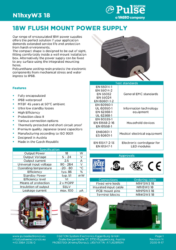 003920495 Zasilacz Egston N1hFSW3 18 5 V/DC 2.5 A 18 W