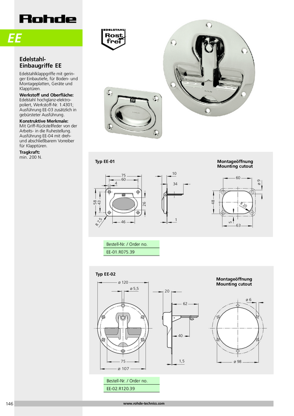 EE-01.R075.39 Uchwyt składany Rohde EE-01.R075.39 do śrub sześciokątnych srebrny (D x S x...