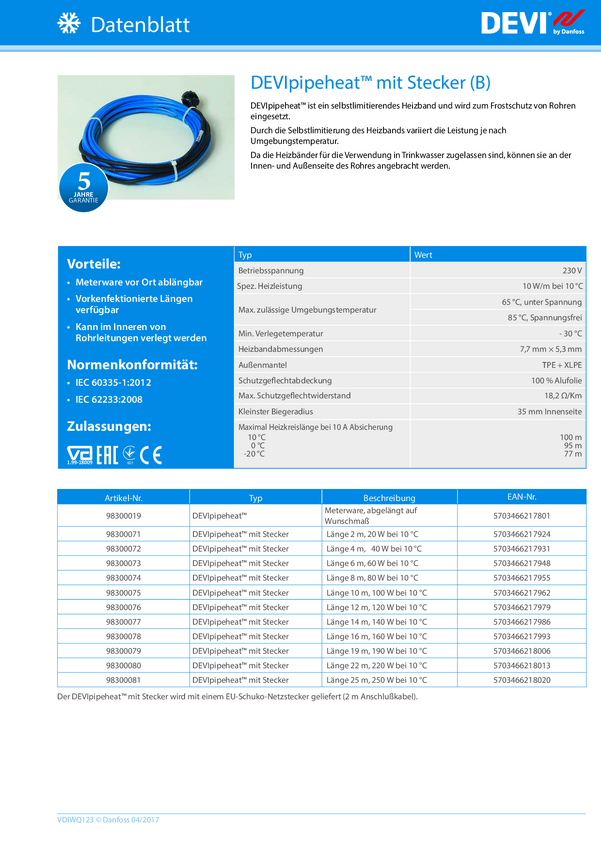 98300080 Taśma grzewcza Danfoss DPH-10 230V 22m 98300080, 230 V, 22 m