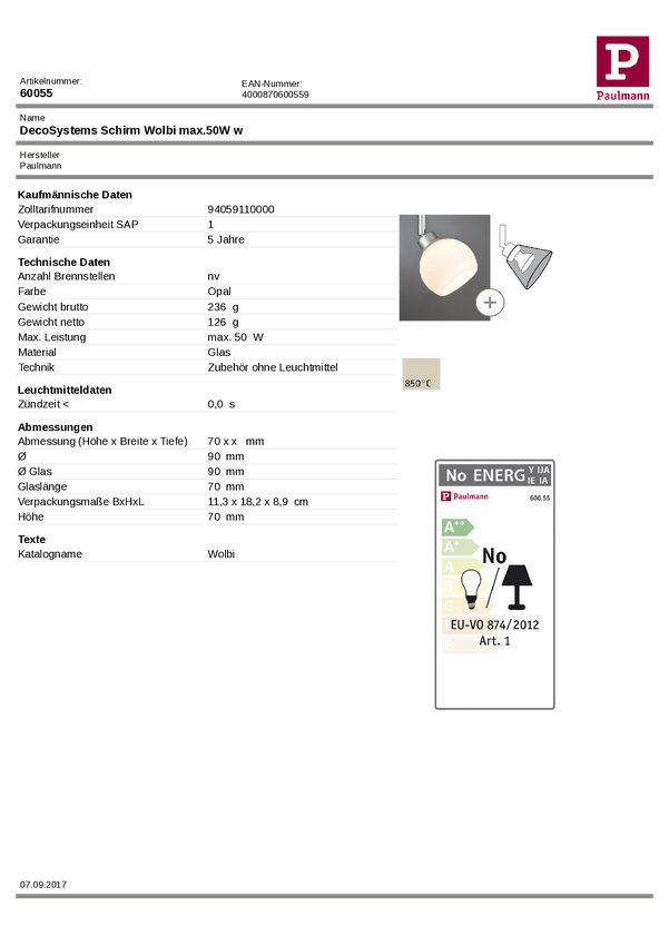 60055 Paulmann Wolbi 60055 Klosz do lampy opal
