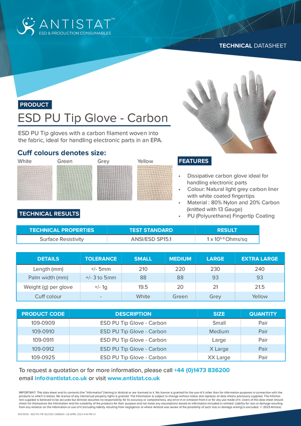 109-0910 Antistat 109-0910 Rękawiczki ESD Rozmiar ubrania: M nylon, karbon