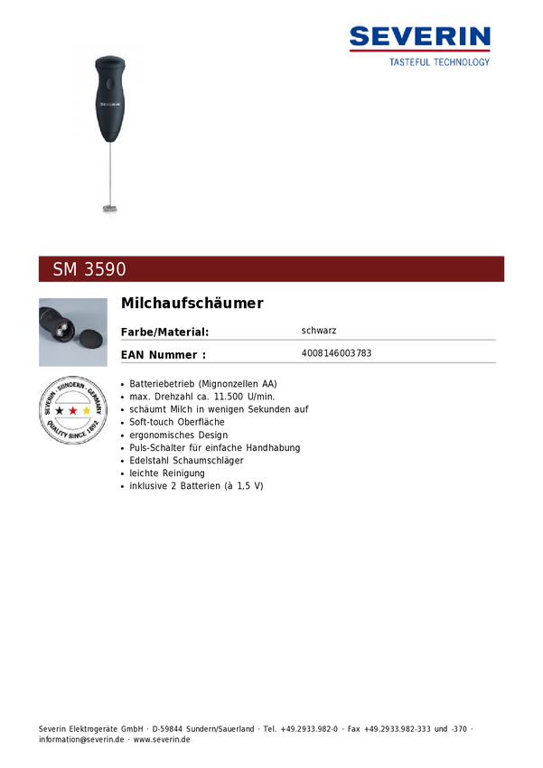 Spieniacz do mleka Severin SM3590, kolor: Czarny