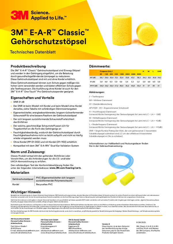FP01008A 3M EAR FP01008A EARFIT PHARMA-PACKUNG Zatyczki do uszu 28 dB jednorazowa 2...