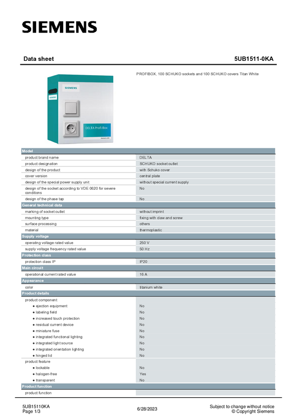 5UB15110KA Siemens Osprzęt elektroinstalacyjny Delta 5UB15110KA 1 szt.