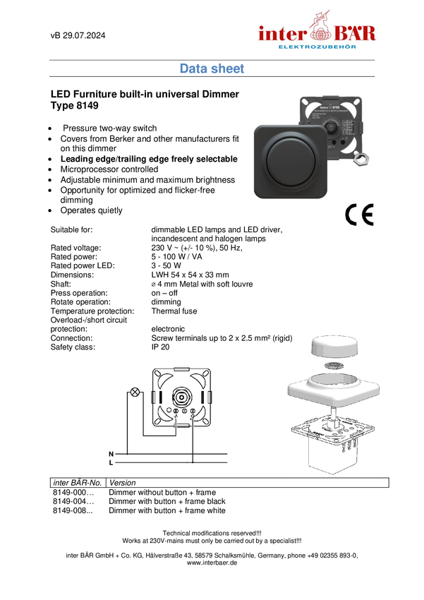 8149-004.01 Regulator natężenia oświetlenia interBär 8149-004.01