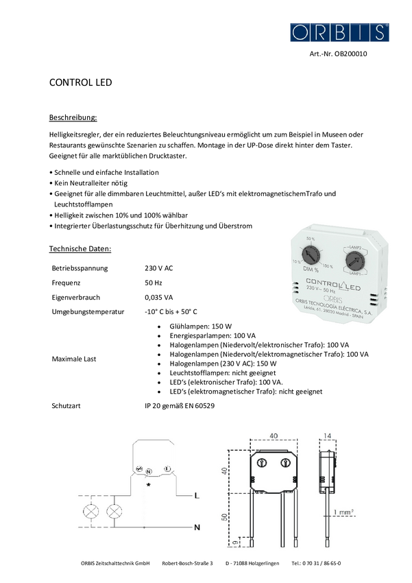 OB200010 Regulator natężenia oświetlenia ORBIS Zeitschalttechnik OB200010
