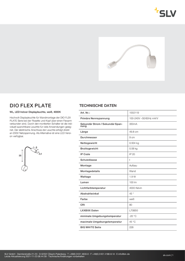 1002119 Lampa LED z zaciskiem SLV DIO FLEX PLATE 1002119 LED wbudowany na stałe 1.9...