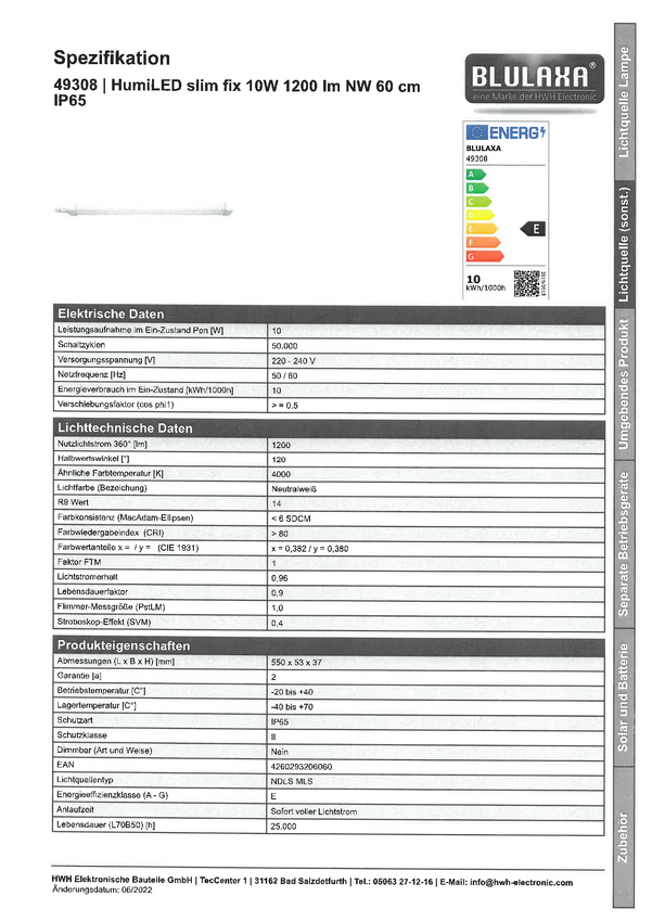 49308 Lampa LED do wilgotnych pomieszczeń Blulaxa HumiLED slim fix 49308, 10 W, 1...