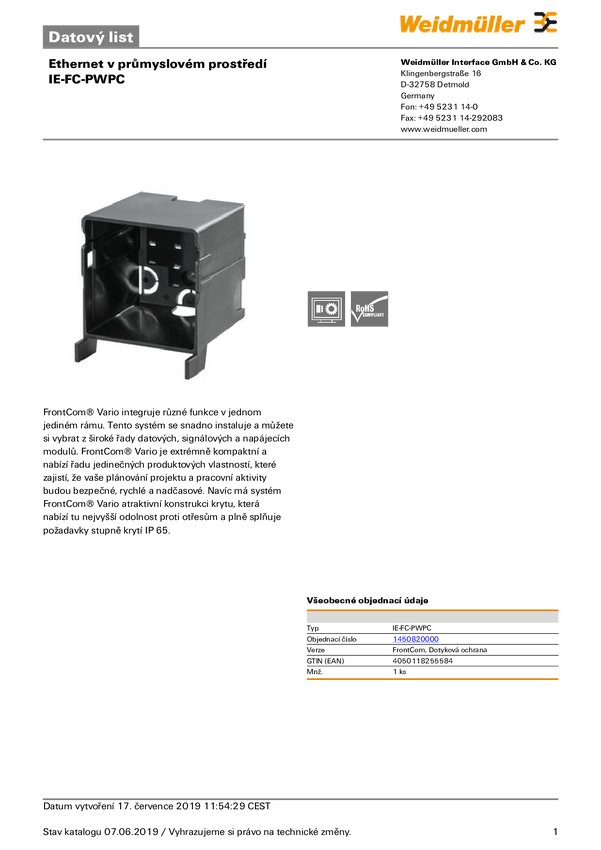 Weidmüller IE-FC-PWPC 1450820000 1 szt.