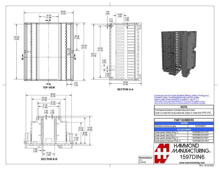 1597DIN6GY Obudowa na szynę DIN Hammond Electronics 1597DIN6GY 1 szt.