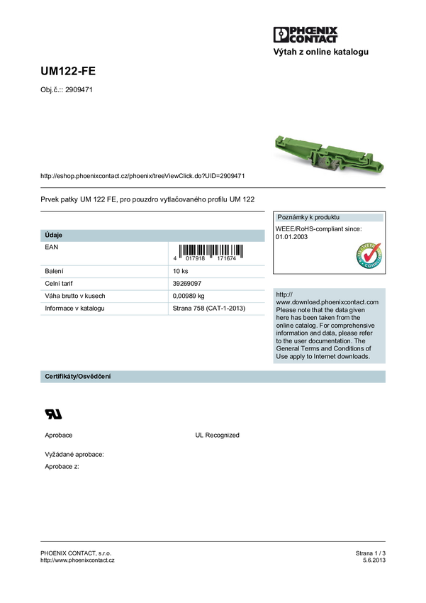 2909471 Podstawka do obudowy na szynę DIN poliamid Phoenix Contact UM122-FE 2909471...