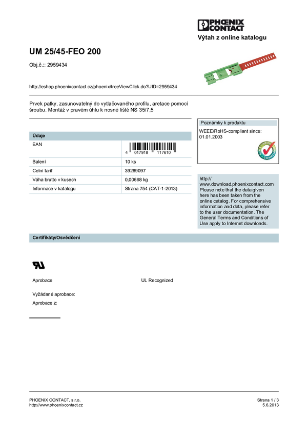 2959434 Podstawka do obudowy na szynę DIN tworzywo sztuczne Phoenix Contact UM 25&#...