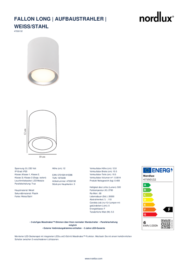47550132 Lampa natynkowa LED Nordlux Fallon 47550132 LED LED wbudowany na stałe 5.5...