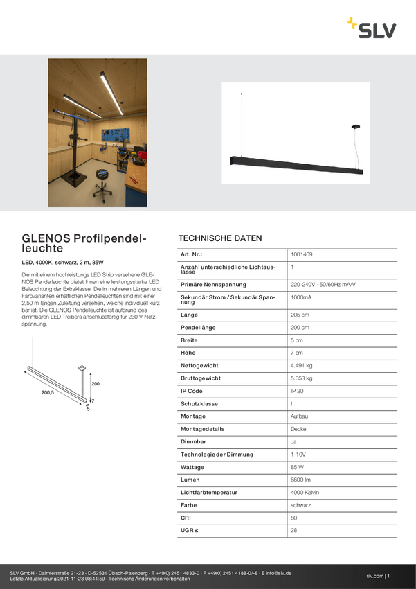1001409 Lampa podwieszana LED SLV GLENOS 1001409 LED wbudowany na stałe 46 W czarny