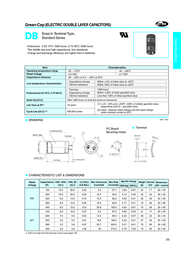 DB0E407M35060HA Kondensator Green-Cap 400 F 2.5 V/DC 20 % (Ø x D) 35 mm x 60 mm Samwha...