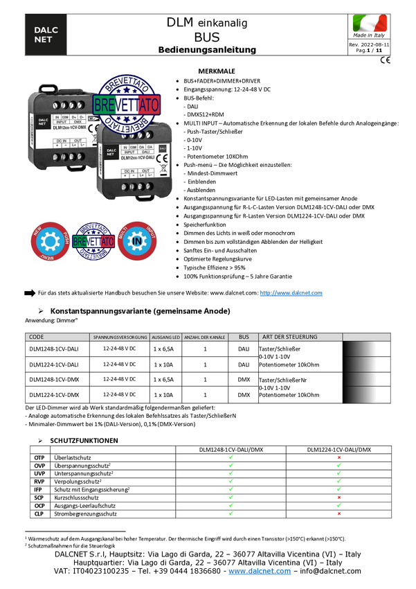 DLM1248-1CV-DMX Ściemniacz Dalcnet DLM1248-1CV-DMX 1-kanałowy