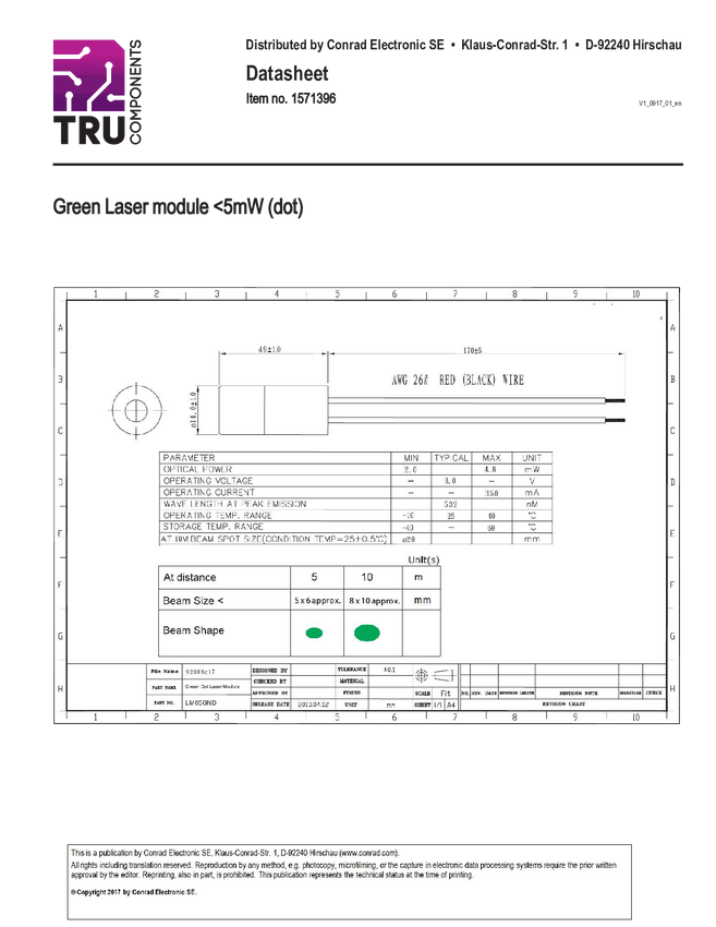 1571396 TRU COMPONENTS LM05GND Moduł laserowy punktowe zielony 5 mW