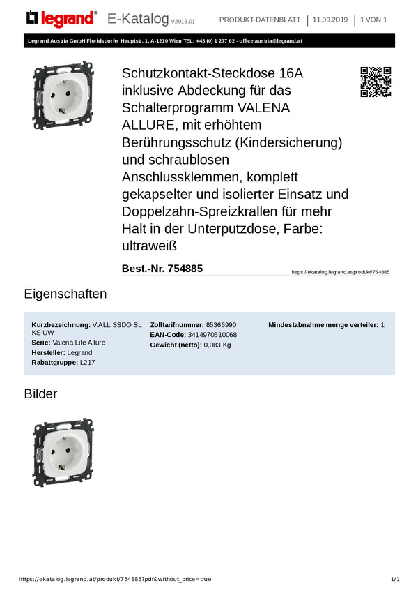 754885 Legrand Gniazdo Valena Life Allure biały 754885