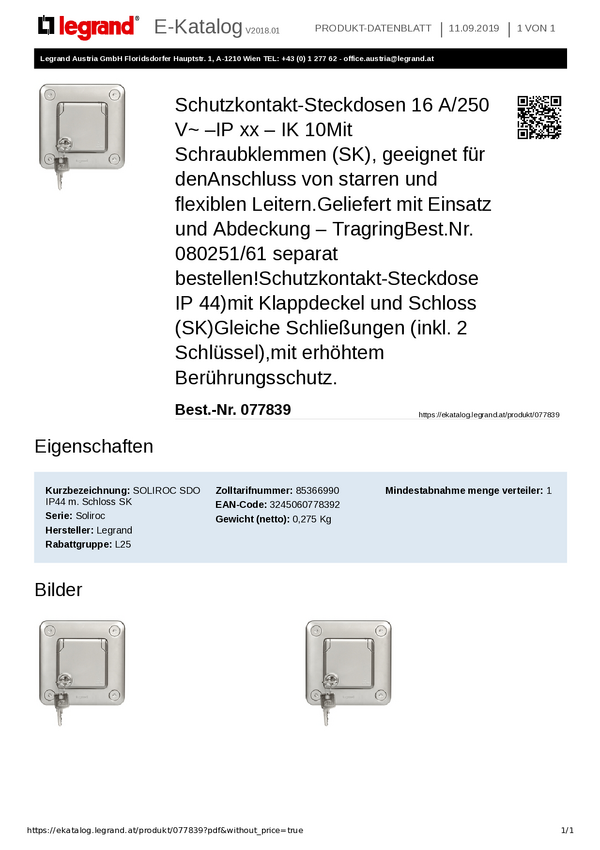 077839 Legrand Gniazdo elektryczne Soliroc chrom 077839 1 szt.