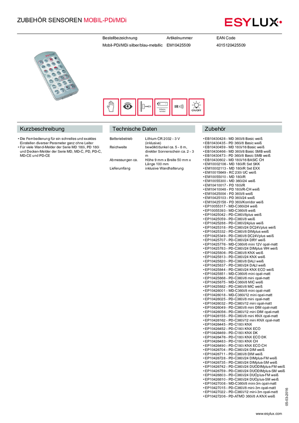 EM10425509 Pilot zdalnego sterowania do czujnika ruchu ESYLUX EM10425509 srebrny